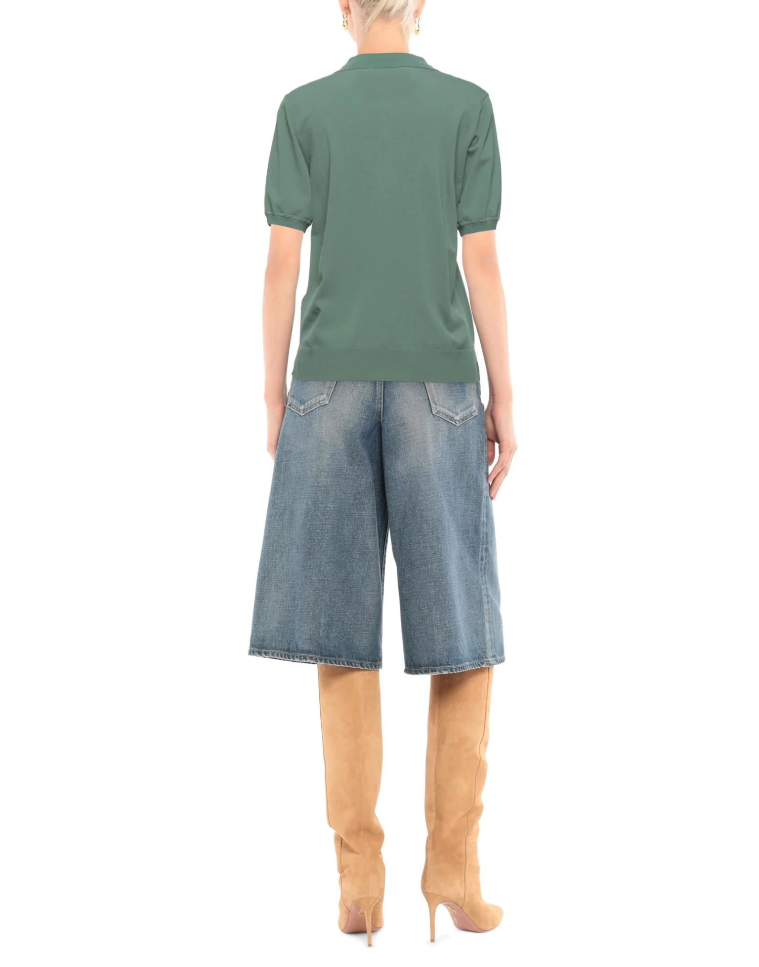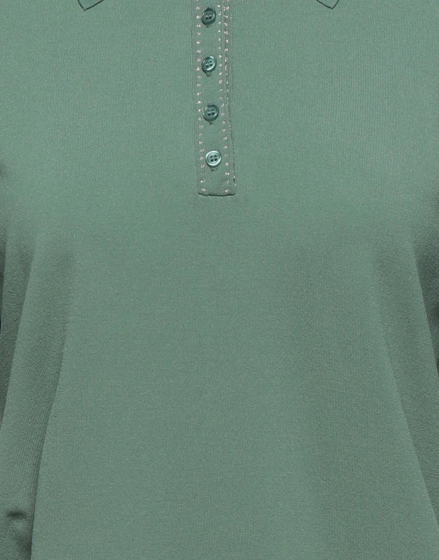 knitted, lightweight knit, no appliqués, two-tone, polo collar, short sleeves, no pockets, lamé, button closing