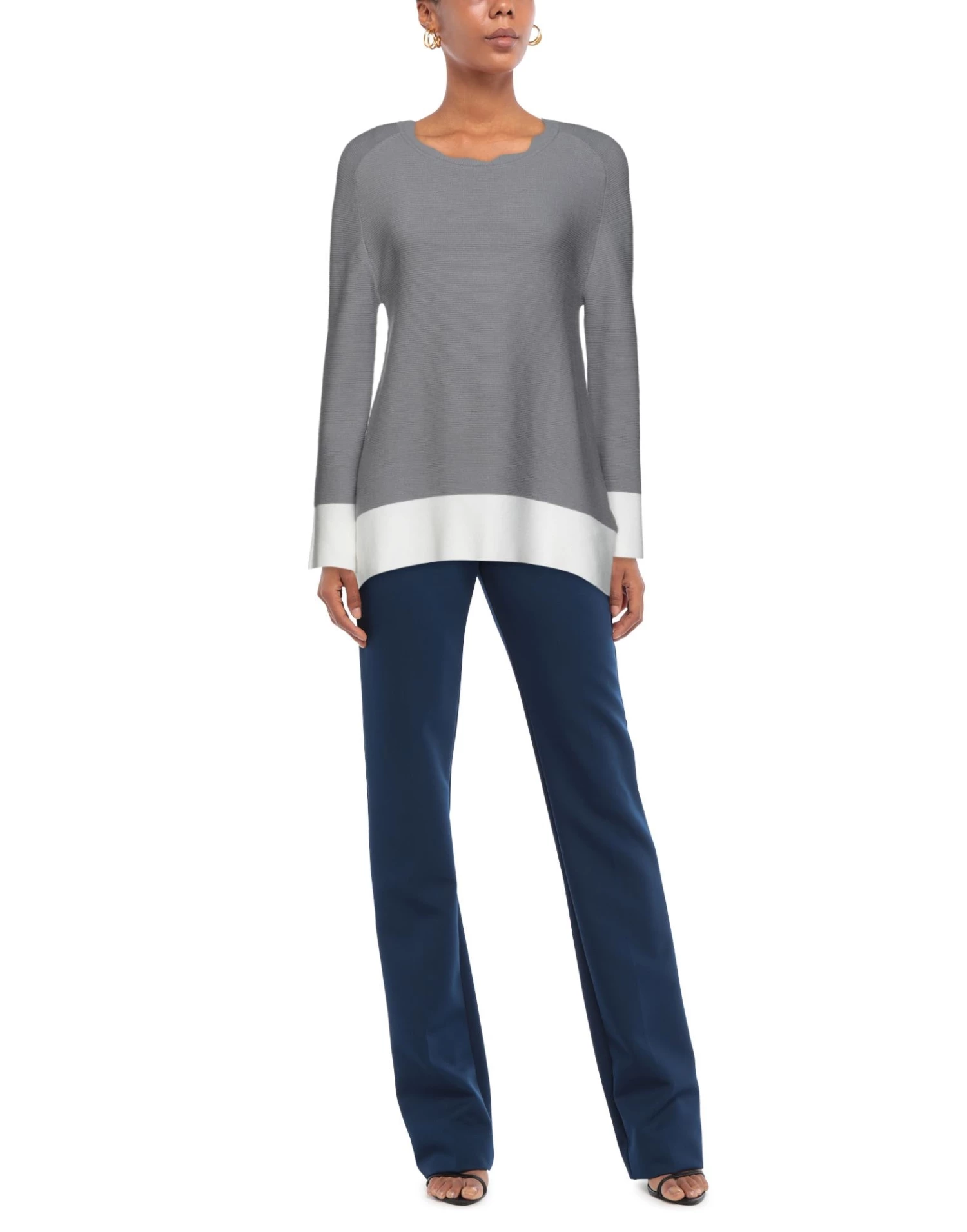 knitted, no appliqués, round collar, two-tone, long sleeves, no pockets, lightweight knit