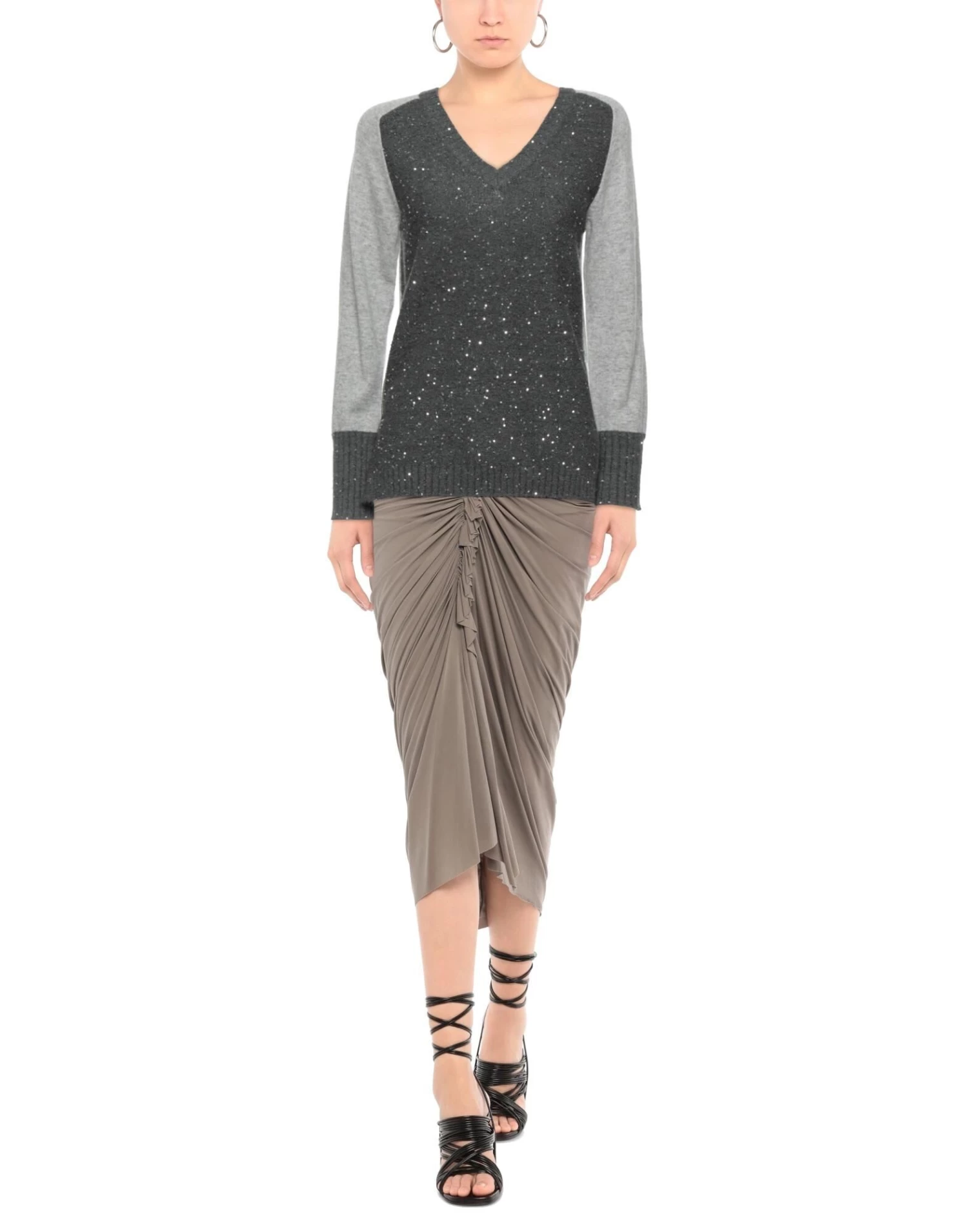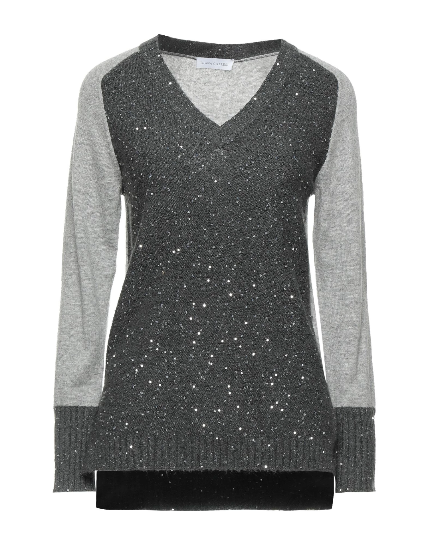 knitted, lamé, lightweight knit, sequins, two-tone, v-neck, long sleeves, no pockets
