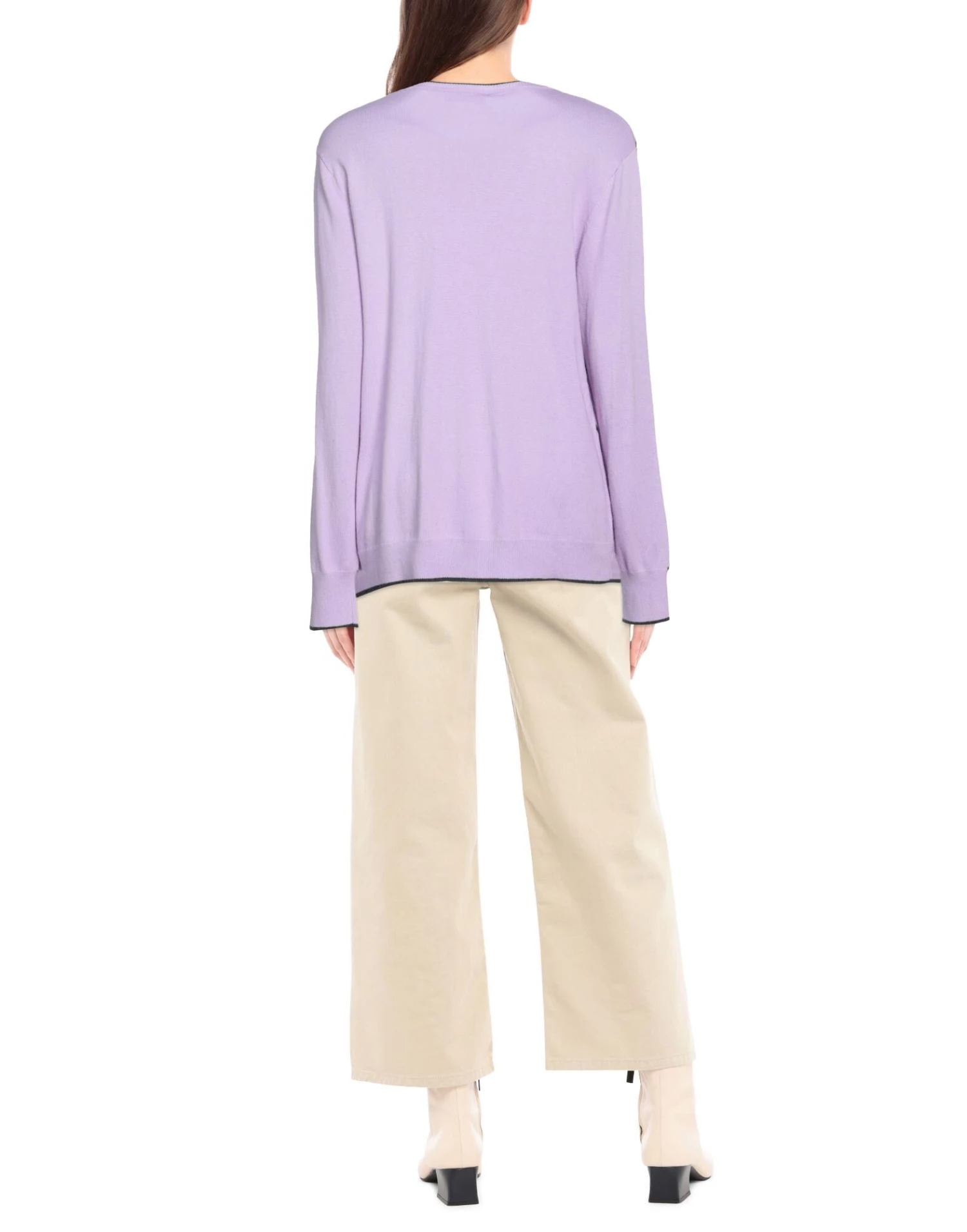knitted, lightweight knit, no appliqués, two-tone, round collar, long sleeves, no pockets
