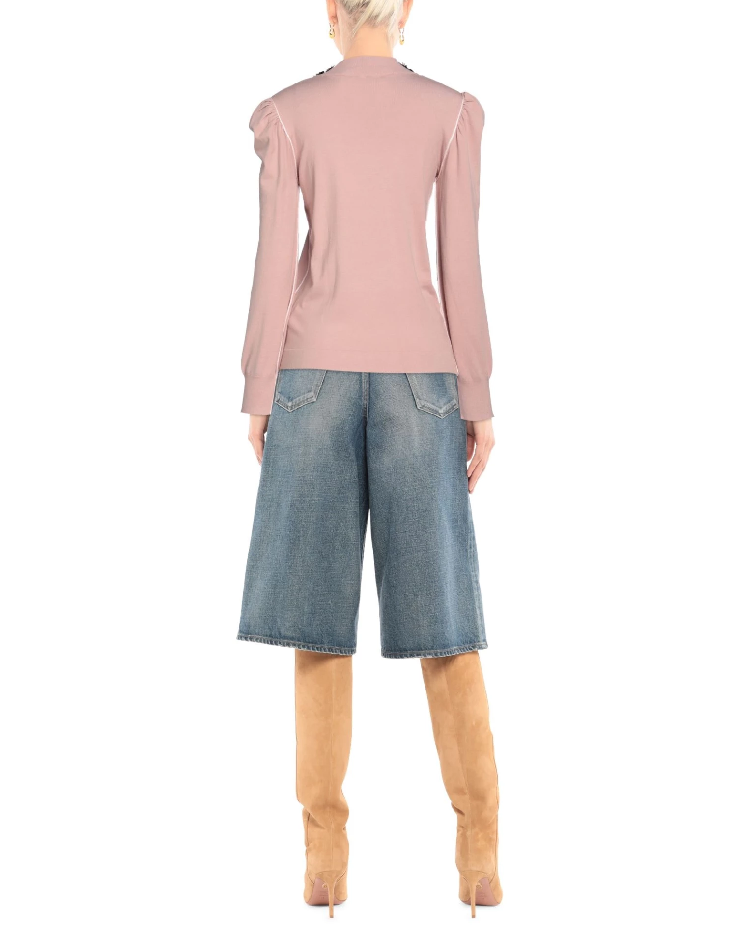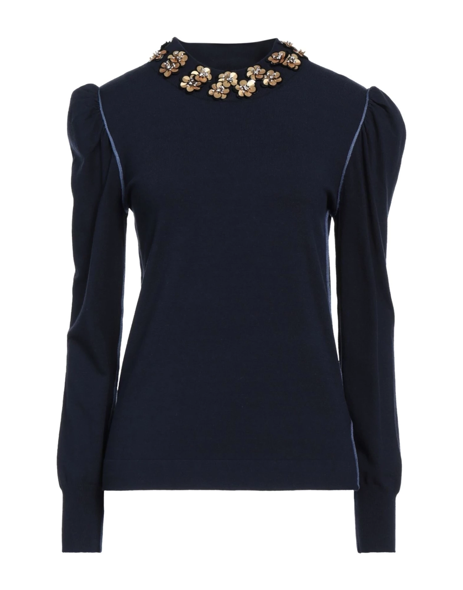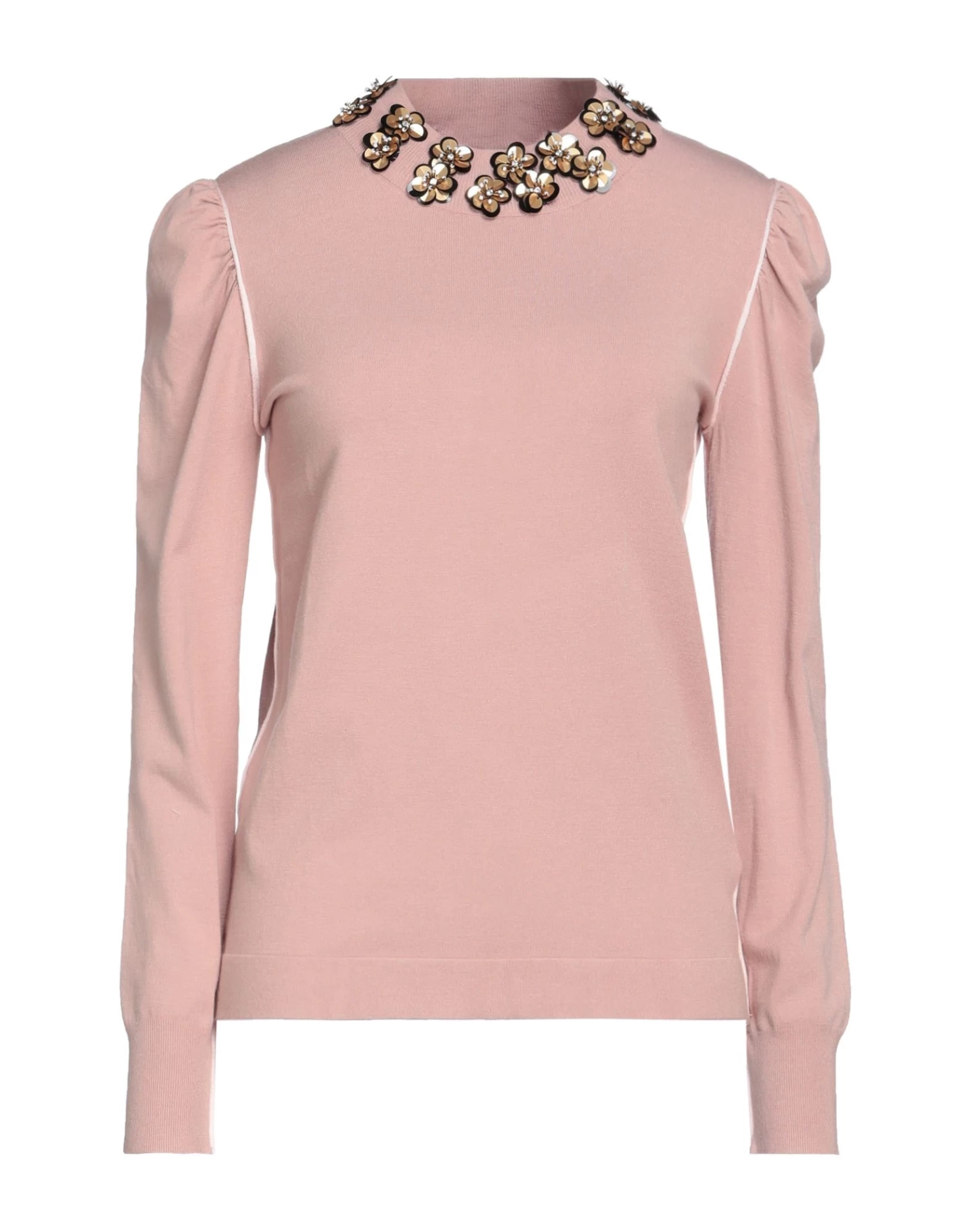 knitted, lightweight knit, flower application, multicolor pattern, round collar, long sleeves, no pockets