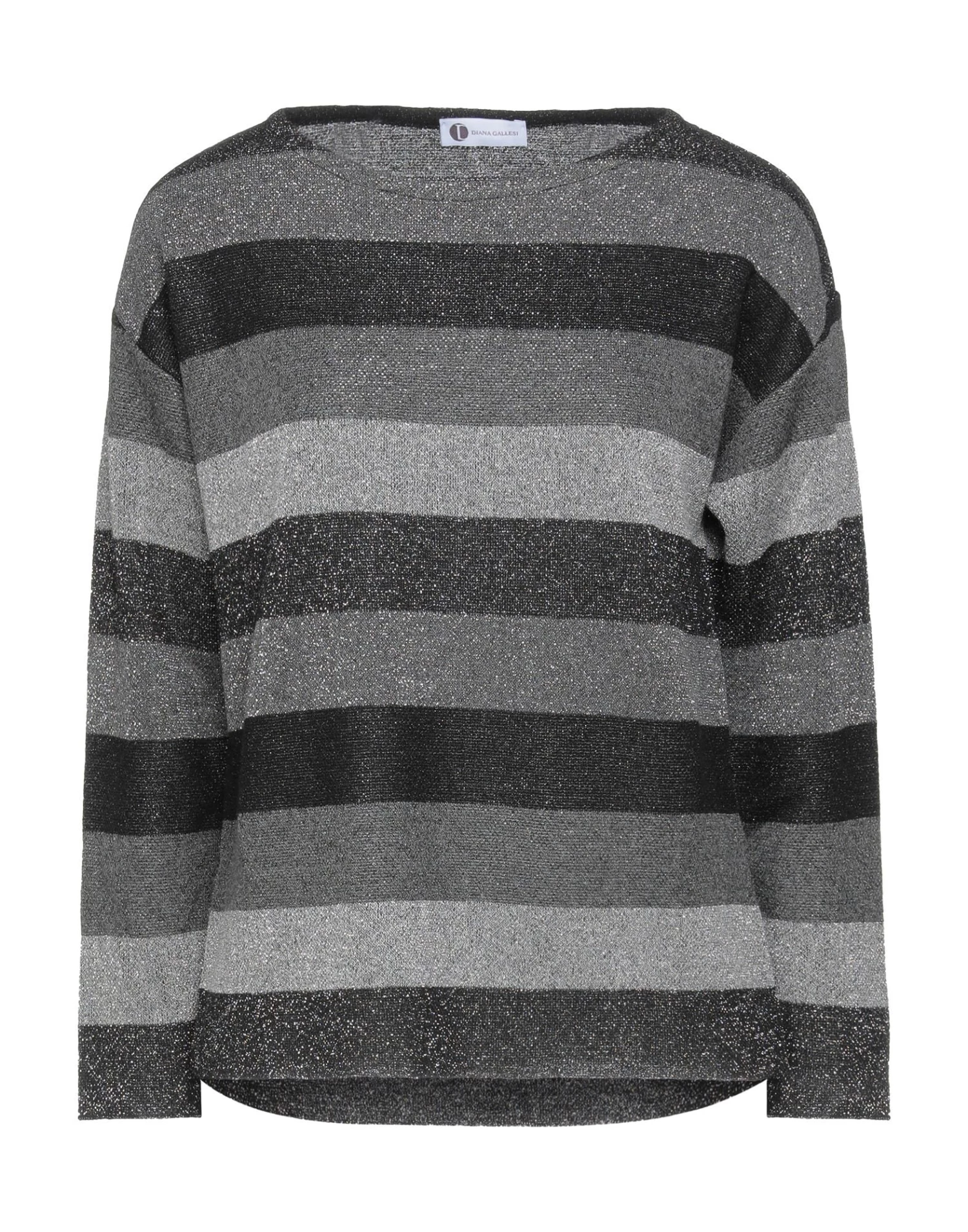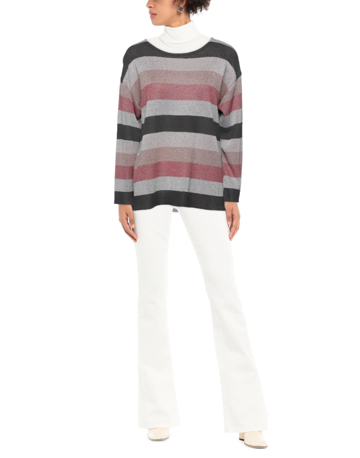 knitted, lamé, no appliqués, lightweight knit, round collar, stripes, long sleeves, no pockets