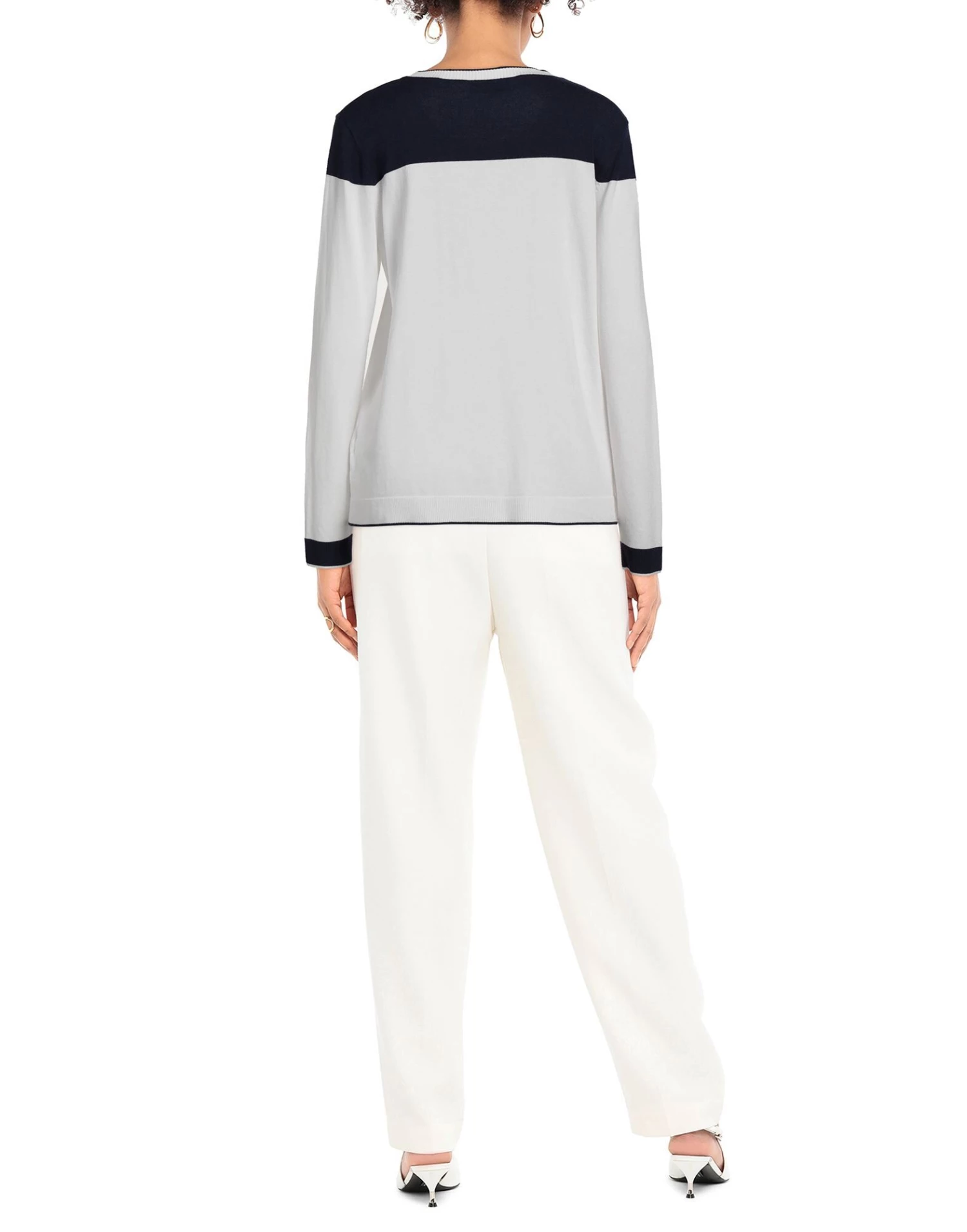 knitted, lightweight knit, beads, two-tone, round collar, long sleeves, no pockets
