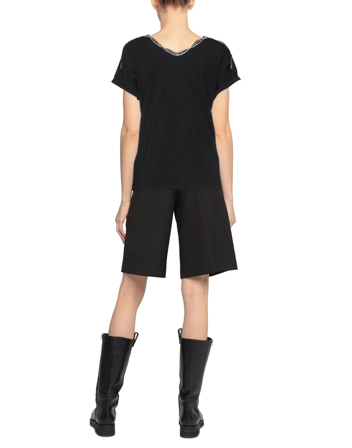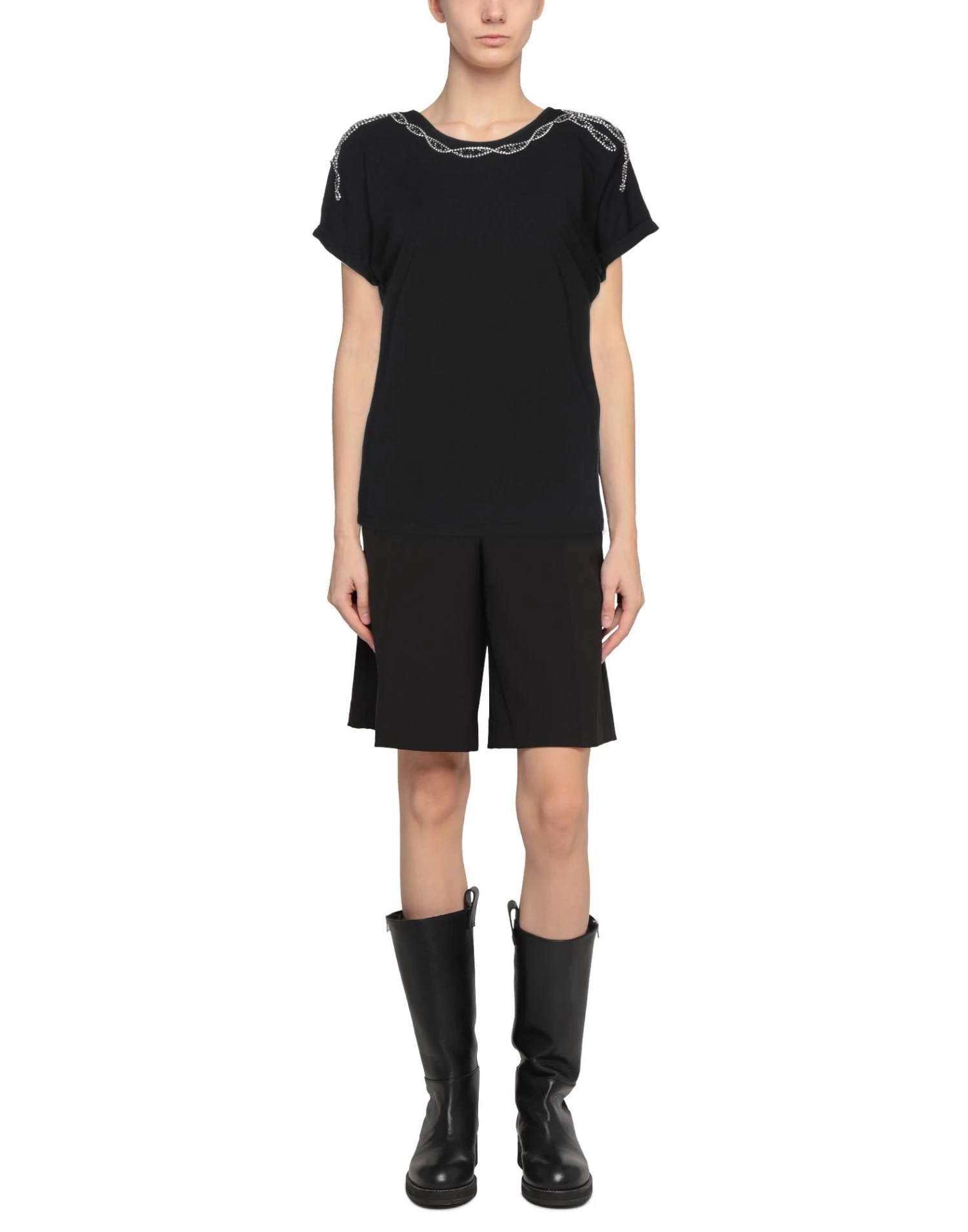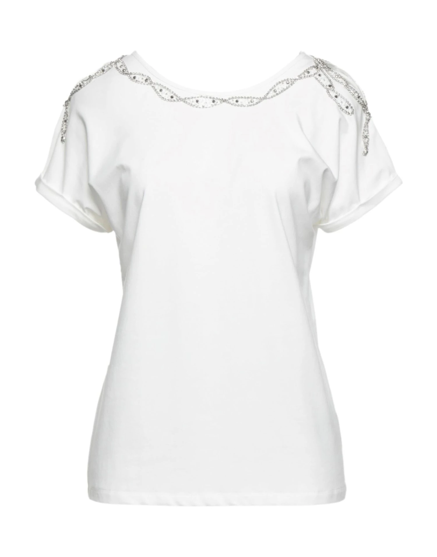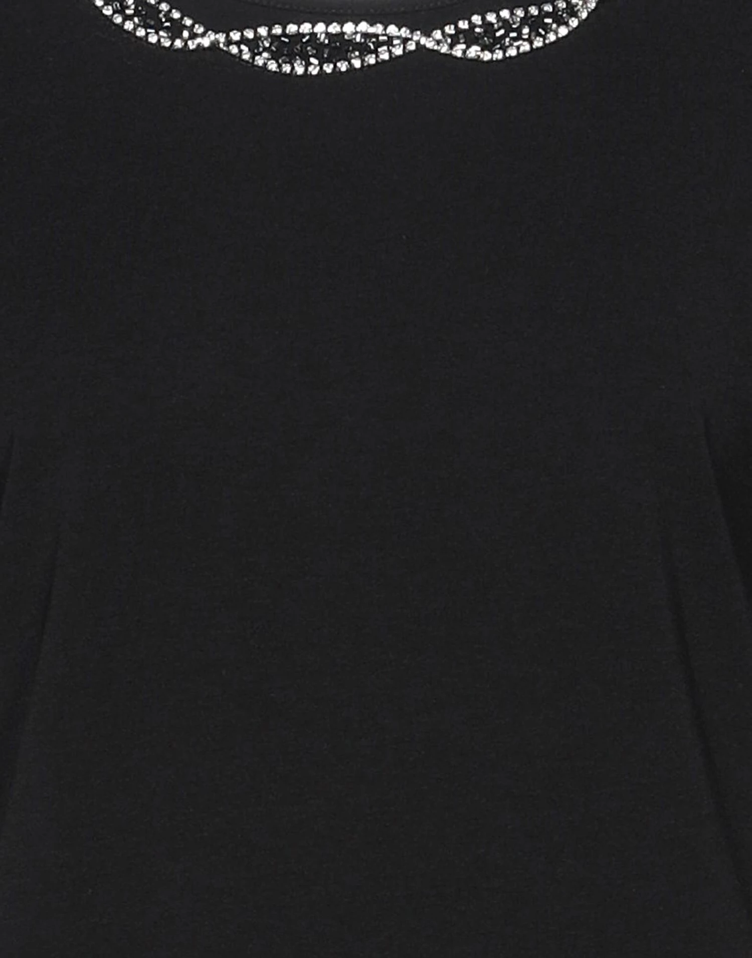 jersey, rhinestones, solid colour with appliqués, round collar, short sleeves, no pockets, stretch