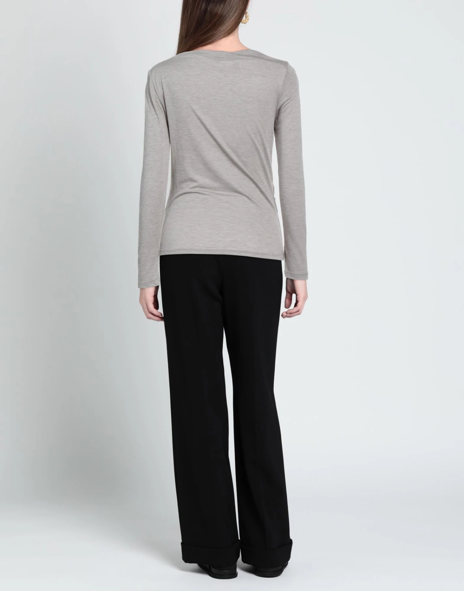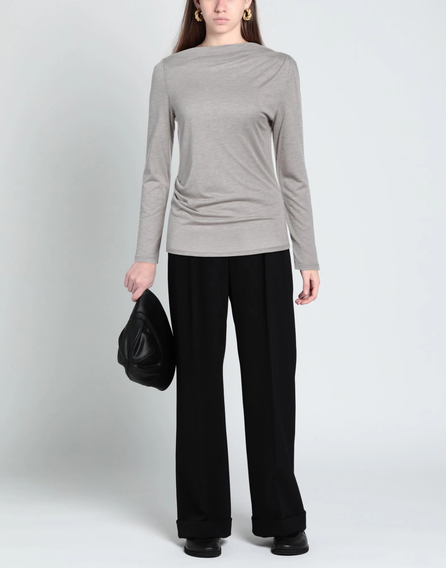 jersey, no appliqués, solid color, collar with draped neckline, long sleeves, no pockets