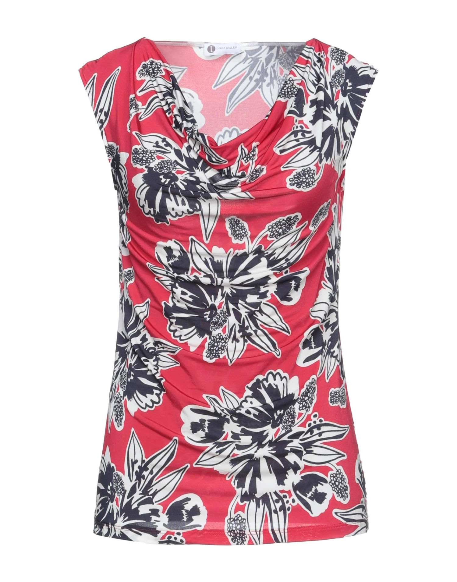 jersey, no appliqués, floral design, collar with draped neckline, short sleeves, no pockets, stretch