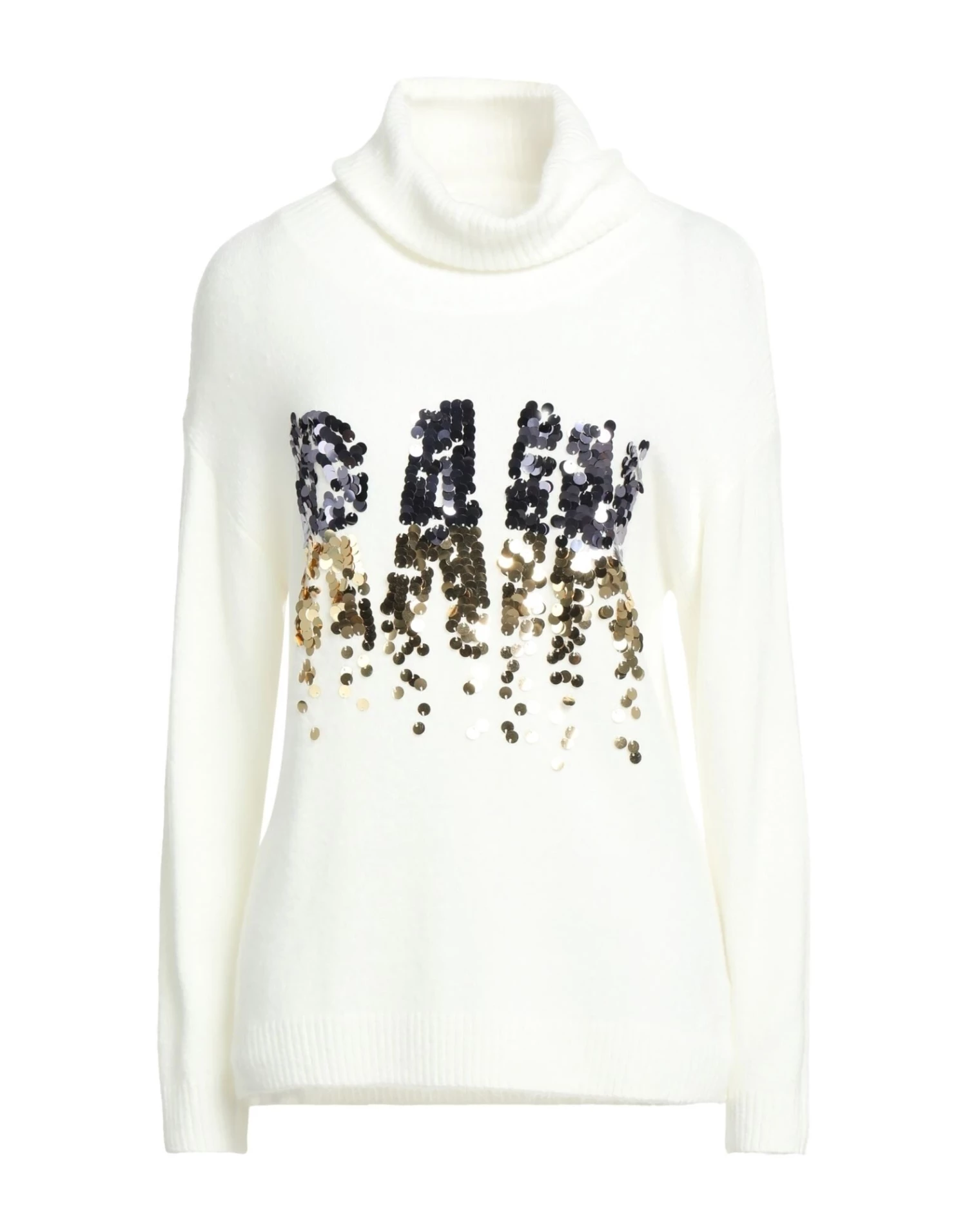 knitted, sequins, solid colour with appliqués, turtleneck, long sleeves, no pockets, lightweight knit, stretch