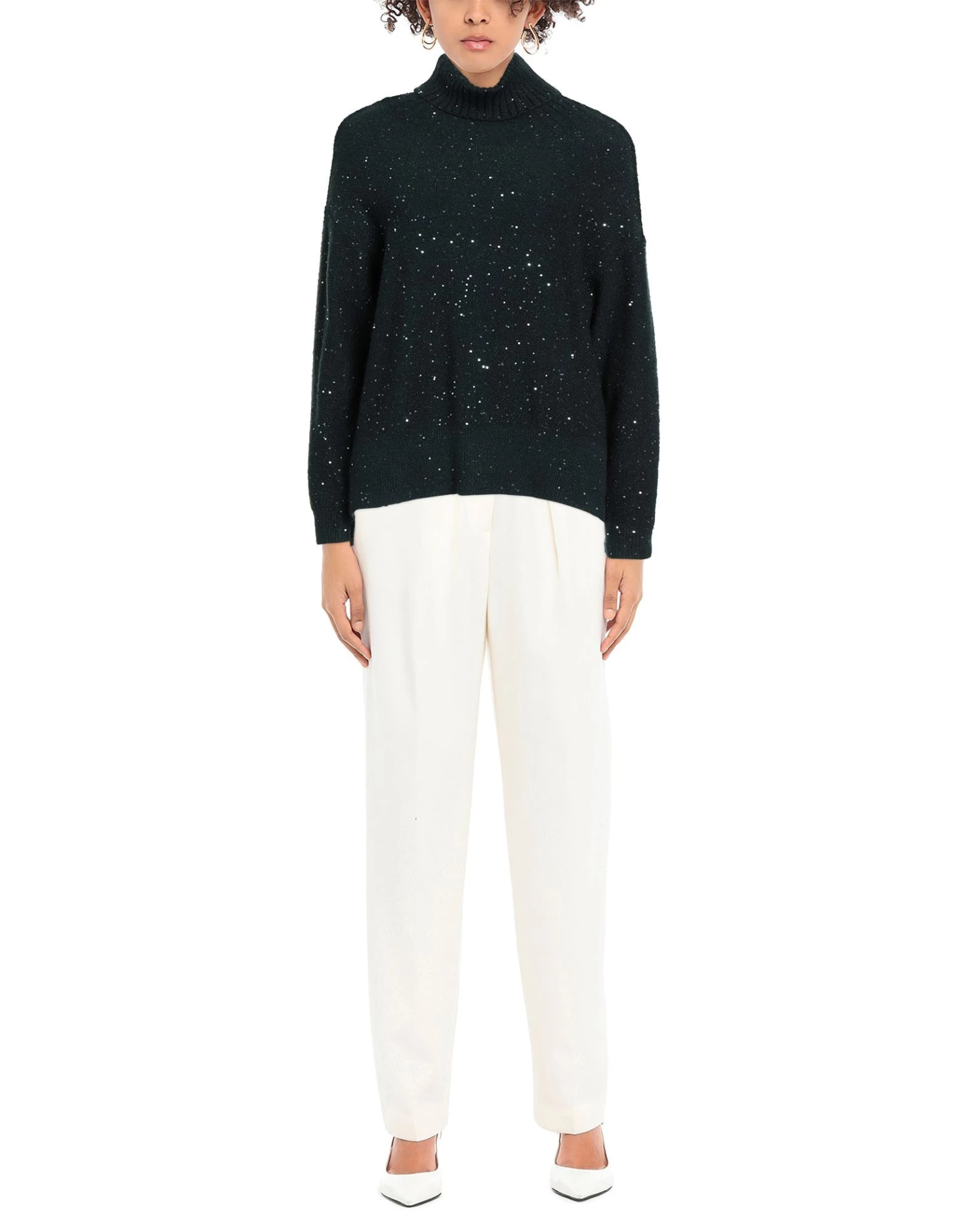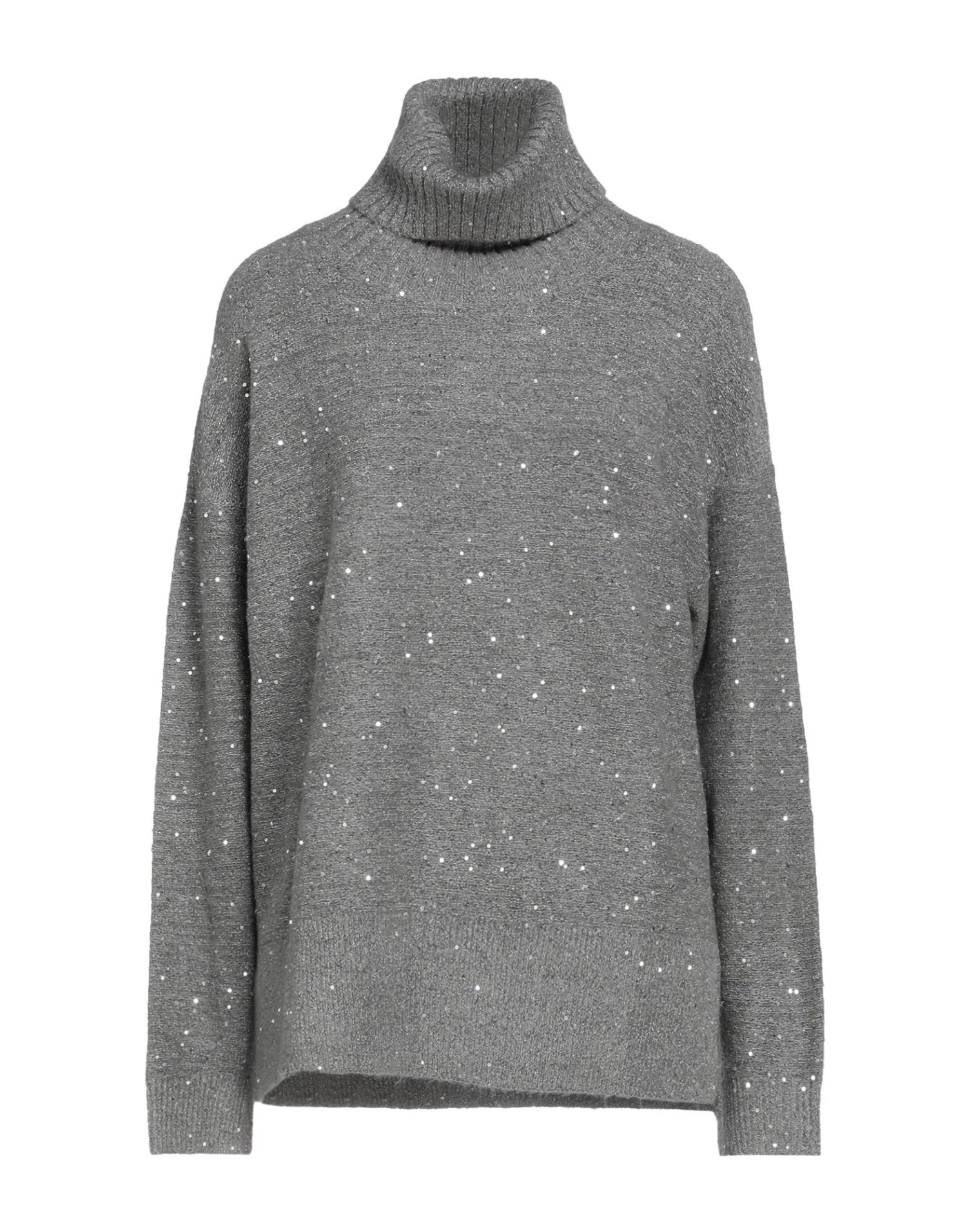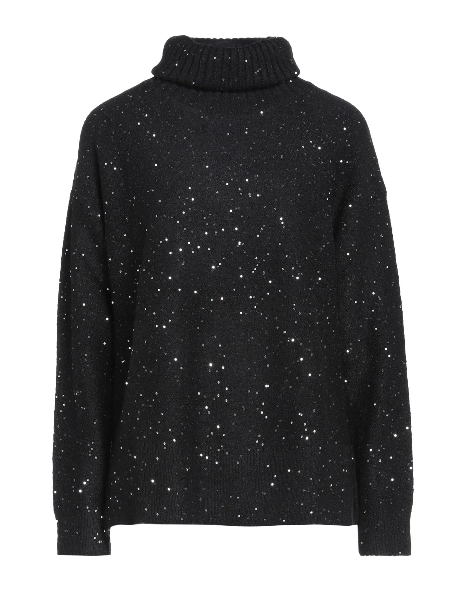 knitted, lamé, sequins, solid colour with appliqués, turtleneck, long sleeves, no pockets, stretch, lightweight knit